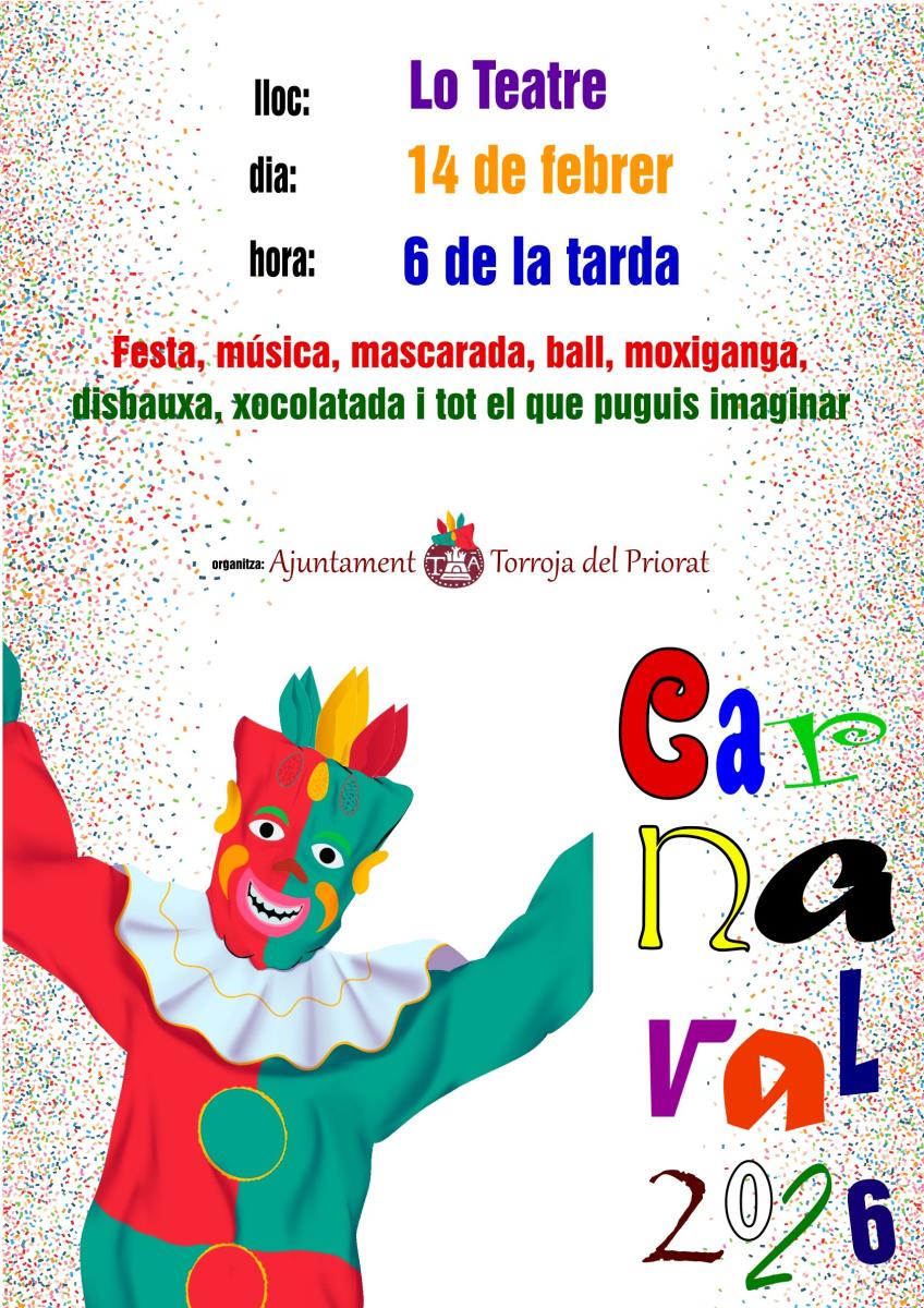 El pròxim dia 14 a les 6 de la tarda us esperem a tots a Lo Teatre. Cal anar convenientment disfressats. Celebrarem la festa de Carnaval.
